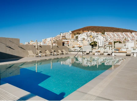 El bar, con su ambiente relajado, acompaña el ritmo pausado de la tarde con cócteles frescos y sabores que parecen viajar con la brisa marina. Desde aquí, Los Cristianos se extiende como una postal infinita, donde el mar, la luz y la vida se encuentran. Un rooftop para dejarse llevar, donde las vistas no se contemplan… se viven.